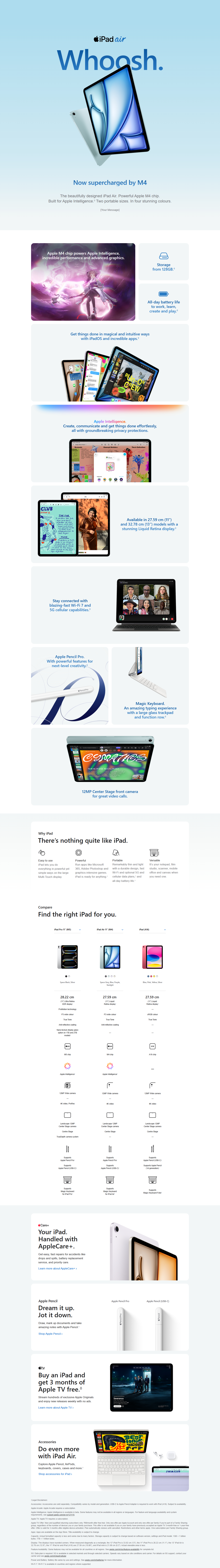 M4 powers Apple Intelligence, incredible performance and advanced graphics with hardware-accelerated ray tracing.
